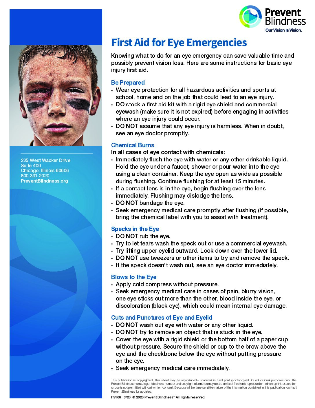 | First Aid for Eye Emergencies | fact-sheets eye-safety childrens-vision documents | |